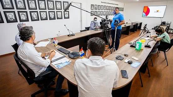 Acompanhado do presidente da agência de fomento Desenvolve, Humberto Lira, e o presidente da Associação Brasileira de Bares, Restaurantes e Similares (Abrasel) de Alagoas,Thiago Falcão, o secretário Rafael ressaltou a ineditismo e a proporção do pacote emergencial.