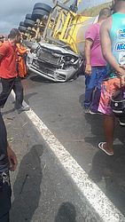 Duas pessoas morreram e outra ficou gravemente ferida durante um acidente de trânsito, na BR-101, em Flexeiras, interior de Alagoas, na manhã desta sexta-feira (02). O acidente, envolvendo um caminhão de combustíveis e um carro de passeio, aconteceu na Rodovia Governador Mário Covas. Pelas imagens registradas, o caminhão tombou sobre o carro de passeio que ficou completamente esmagado.