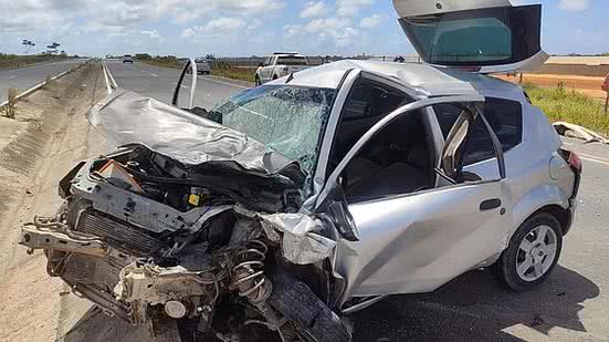 Os dois veículos se chocaram de frente, e o caminhão chegou a ficar virado no acostamento da via. O carro ficou com a frente toda destruída.