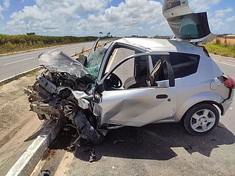 Um grave acidente envolvendo um caminhão e um carro, modelo Ford Ka, foi registrado na manhã desta sexta-feira (30), na extensão da AL-105, em um novo trecho, próximo ao Aeroporto, concluído recentemente, e que liga Rio Largo à Avenida Cachoeira do Meirim, no bairro do Benedito Bentes.