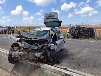O Corpo de Bombeiros foi acionado para a ocorrência e informou que o motorista apresentou lesão corte contuso na região sub ciliar esquerda, além de se queixar de dor na região pélvica e no membro inferior esquerdo. As guarnições realizaram a retirada da vítima do veículo, mas ela não estava presa às ferragens.