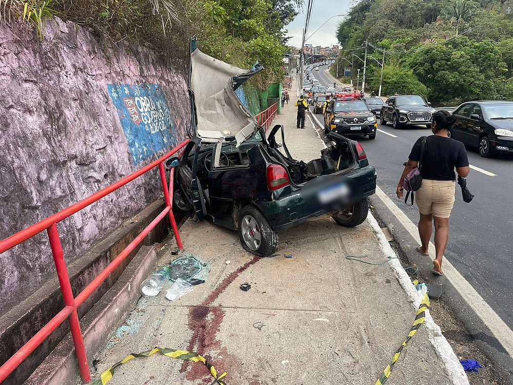 O Corpo de Bombeiros foi acionado para o desencarceramento das duas vítimas e 12 militares atuaram em quatro viaturas. Foi necessário retirar o teto do carro para que o resgate do sobrevivente por cima do automóvel.