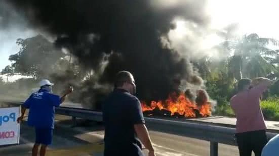 Os manifestantes levaram faixas e tomaram conta do asfalto, com o objetivo de obstruir a passagem de veículos na rodovia. Eles colocaram pneus no meio da pista e atearam fogo, o que provocou uma grande cortina de fumaça na região. Os condutores tiveram dificuldades para trafegar e o trânsito ficou lento.