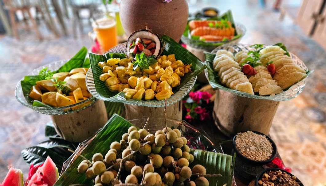 O café da manhã é sempre uma grata surpresa. As frutas da estação deixam tudo mais saboroso: jaca docinha, manga e pitomba foram minhas paixões deste mês de março, mas há também mamão, melão, banana, morango... Sem falar na tapioca, cuscuz, torta salgada ou empada de camarão, bolo e a famosa cocada de forno da Rosa. Uma infinidade de sabores! Mas o pão de queijo, servido nas mesas com o "bom dia" e a alegria de Carla Graziella, é simplesmente divino. Coisa que alagoano faz bem: o bem-receber.