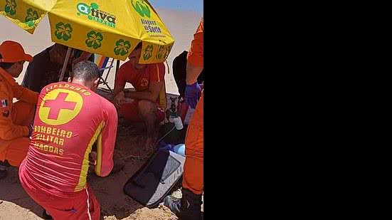 A vítima recebeu os cuidados na faixa de areia da praia e depois foi encaminhada a um hospital particular.