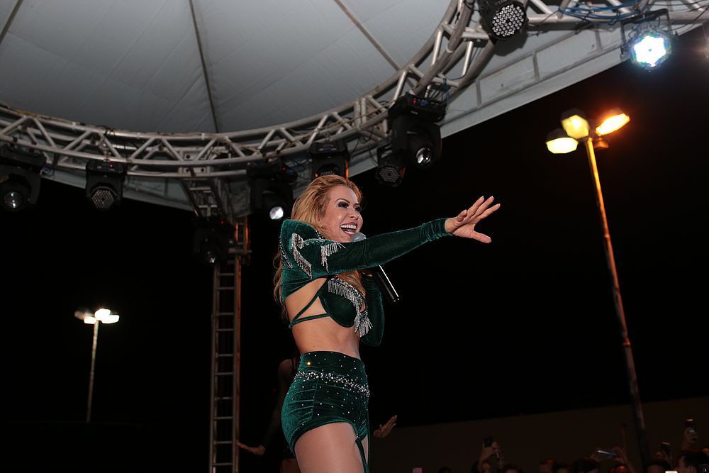 | A cantora Joelma colocou o público para dançar (Crédito: TV Pajuçara) |