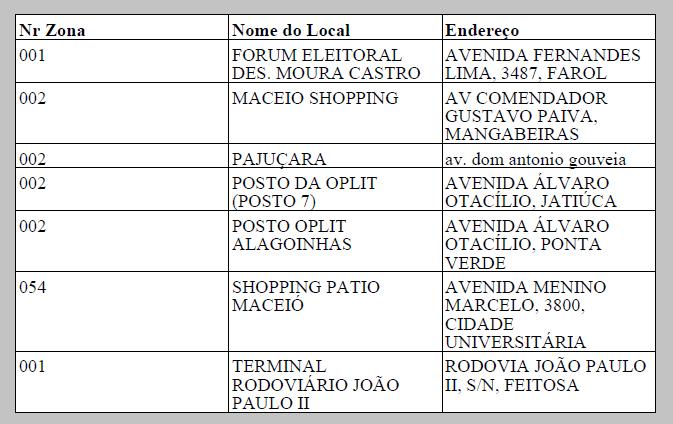 São Miguel dos Campos, no próprio cartório eleitoral.