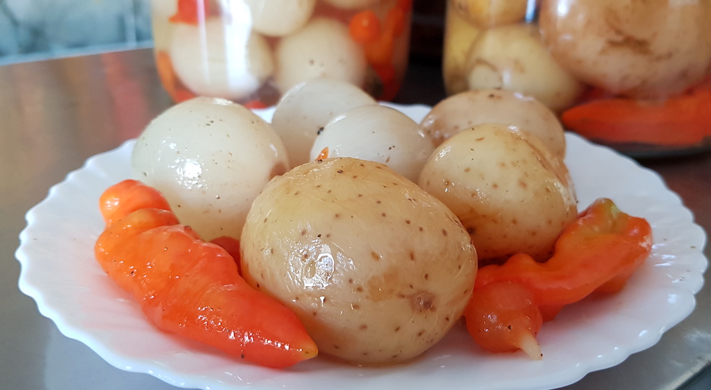 Batata e cebola na conserva