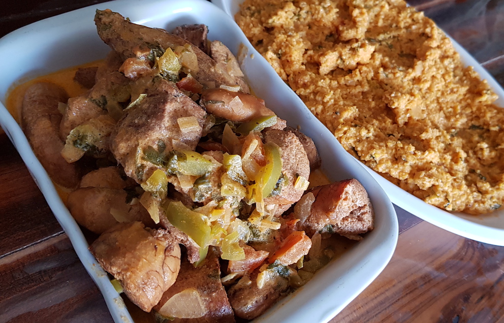 Agora, na cozinha do bar, o alagoano acrescentou, na mesma receita, leite de coco e o caldo do peixe ou de ova e serviu com ova de peixe, mas também pode comer o tal do pirão com peixe. É bom? Não, se amostra! Provei este manjar do mar junto do meu colega Wilson Júnior (@wilsonjunioral).
