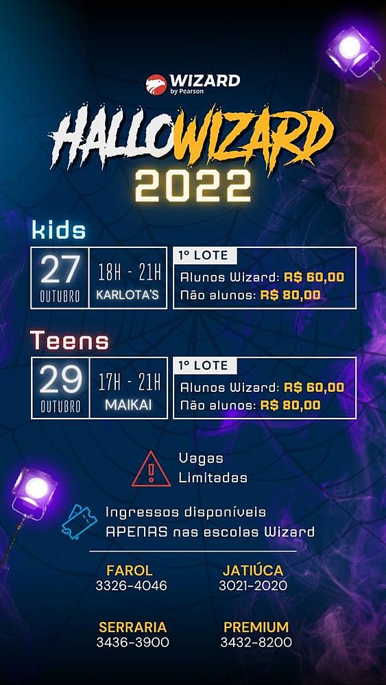 Este ano, a escola de inglês Wizard realiza mais uma edição do seu tradicional evento de Halloween, o HalloWizard. E, desta vez, em dose dupla: para crianças e para os adolescentes!