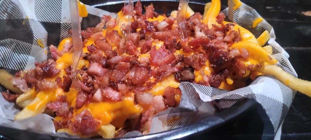 Eu provei cheeseburger duplo (60g cada), duas fatias de queijo cheddar, cebola picada, picles, mostarda, apenas pedi para não adicionar ketchup, tudo no pão torrado com manteiga. E adorei, textura macia, tempero bom, simples e gostoso. Mas tem cheeseburger triplo e com opções bacon. Destaque para os picles de pepino (feito na própria hamburgueria) com pouca acidez. Outro detalhe é que o queijo cheedar é um creme preparado no food truck.