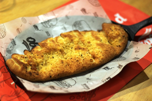 Massa de pizza branca Para compartilhar: fechada com recheio de queijo parmesão e pasta de alho