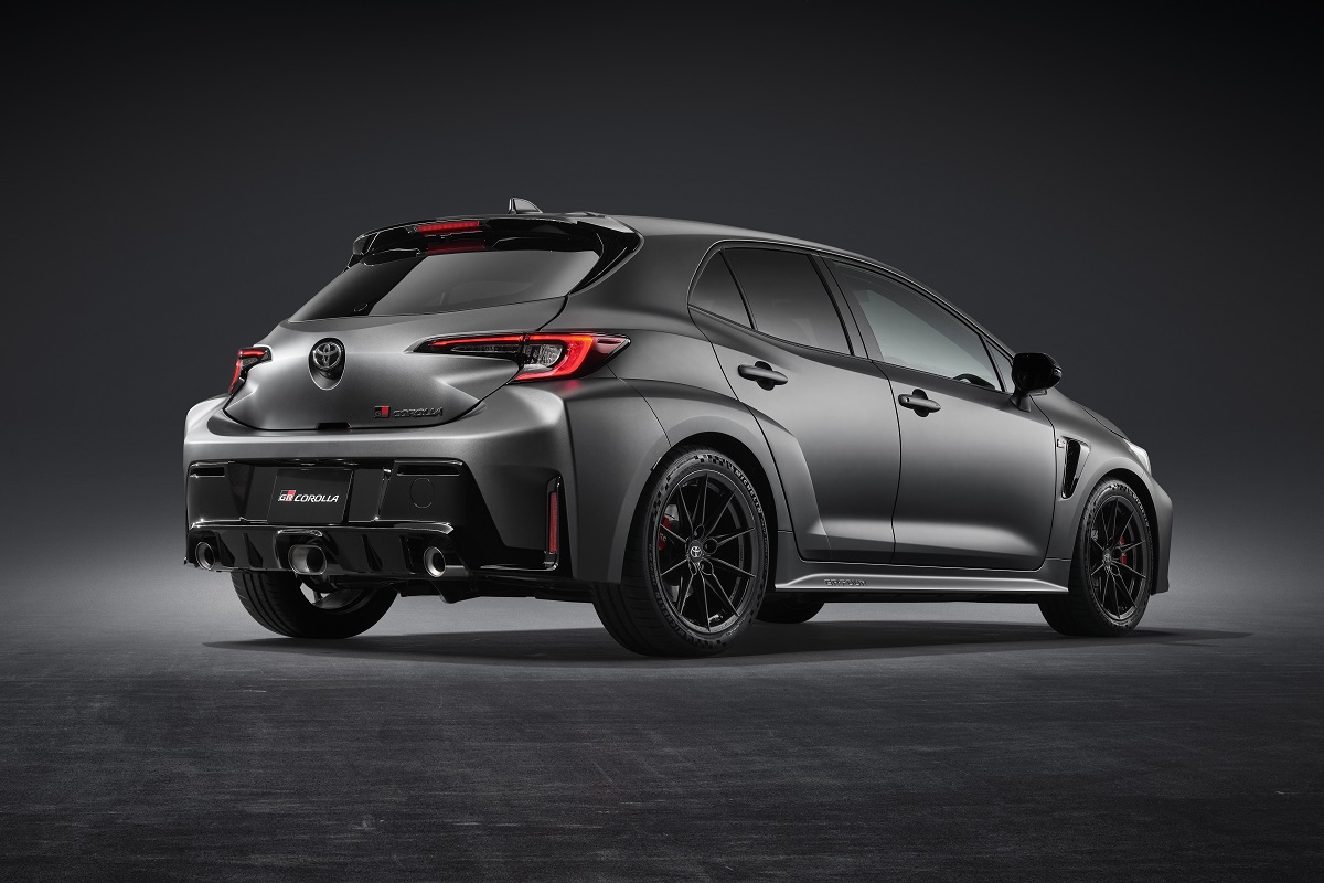 Ao adotar a estrutura básica da carroceria do Toyota Corolla Hatchback para permitir que ele herdasse ampla estabilidade em altas velocidades, o GR Corolla teve a geometria de suspensão aprimorada. O modelo possui uma bitola 60 mm mais larga na frente e 90 mm mais larga na traseira para comandar um alto nível de desempenho nas curvas e, como resultado, entrega diversão, confiança e esportividade na mesma medida.
