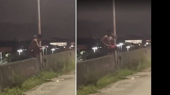 Vídeos mostram o momento em que o suspeito foi cercado por PMs. Como mostram as imagens, Índio ficou agarrado em um poste de iluminação por horas e ameaçou cometer suicídio, mas foi capturado com o apoio de bombeiros na noite de domingo.