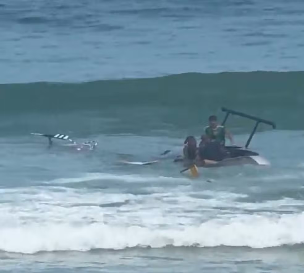A queda ocorreu por volta das 11h20, próximo ao posto 4, e as vítimas apresentaram apenas ferimentos leves após serem retiradas da água.