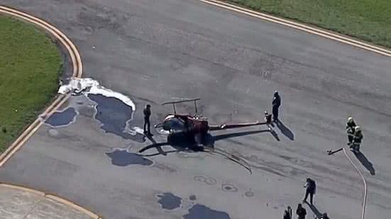 Ainda segundo os bombeiros, o departamento de combate a incêndios, do próprio aeroporto, fez uma linha de proteção em volta da fuselagem do helicóptero, caso houvesse explosões por conta da queda.