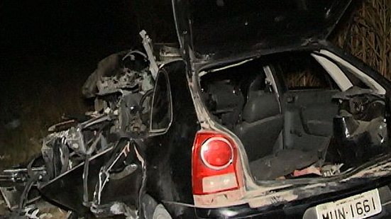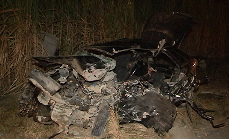 | Carro ficou completamente destruído. Foto: Reprodução TV Pajuçara |