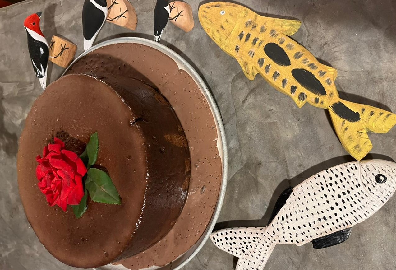 Bolo de chocolate com flor artesanato da Ilha do Ferro, Foto Janaina