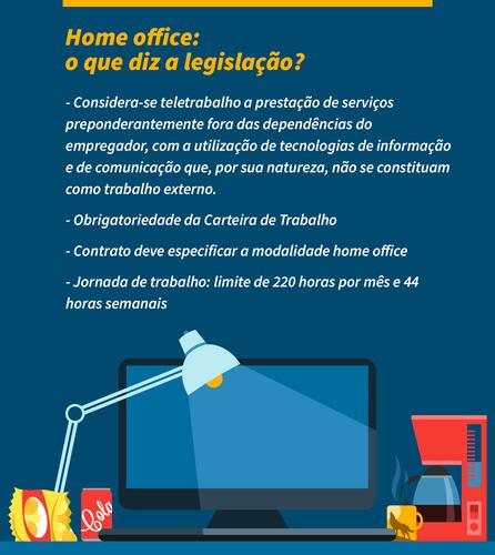 A atualização da legislação trabalhista brasileira, em vigor desde novembro do ano passado, regulamentou a atividade de home office. Para isso, a reforma trabalhista criou o Capítulo II-A da CLT. A normatização aborda questões como jornada de trabalho, onde o trabalhador não fica submetido ao registro do ponto, porém não faz jus a horas extras. Clique aqui e veja a nova legislação na íntegra.
