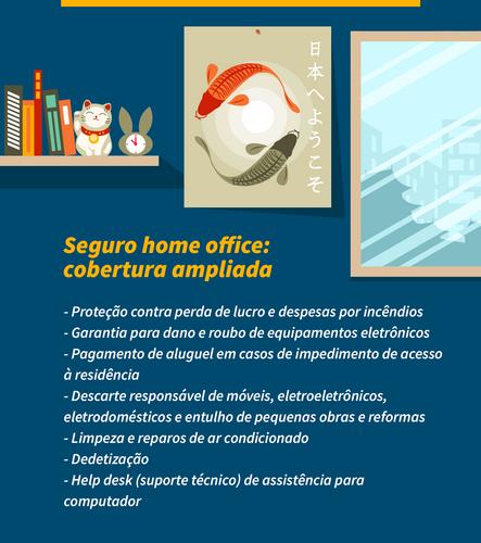Na verdade, o que se chama de seguro home office é na verdade uma cobertura opcional para quem contrata o seguro residencial. A importância do home office é que o seguro residencial não cobre bens destinados a atividades profissionais, como equipamentos e outros. Ou seja, se um incêndio atinge sua casa e você perde os equipamentos de seu escritório, o seguro não necessariamente cobriria essa parte dos danos.