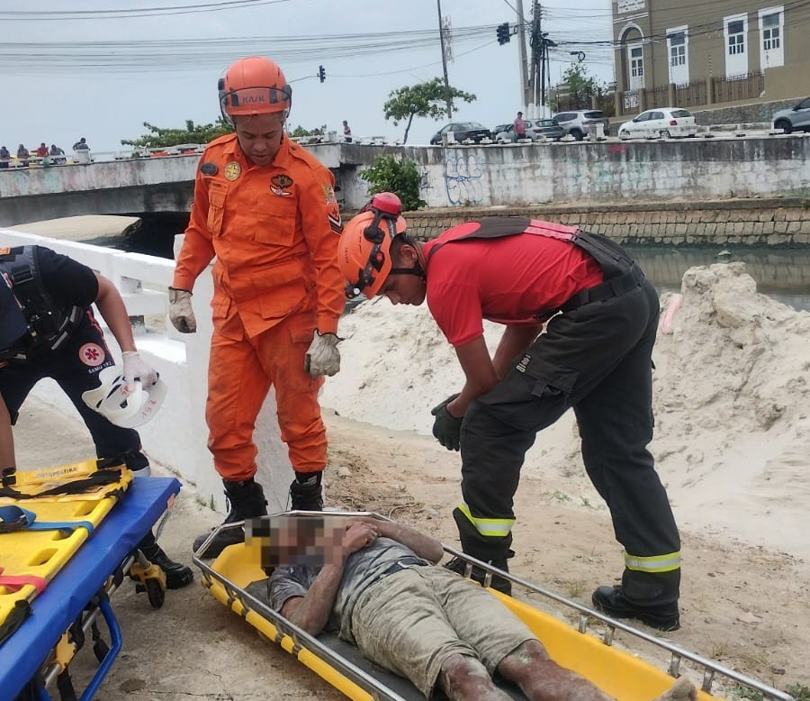 Um homem de 45 anos, com sinais de embriaguez, caiu da ponte sob o Riacho Salgadinho, na altura da Praia da Avenida, no bairro Jaraguá, em Maceió, e precisou ser socorrido, na manhã deste sábado (11).