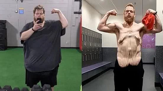 Um homem de 39 anos usou as redes sociais para compartilhar as mudanças no corpo dele após perder 161 quilos.