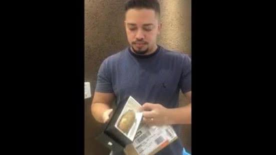 “Quando cortamos o pacote, a caixa estava meio aberta. No lugar do celular, a mandioca. Arrancaram a nota fiscal”, disse Renato. “Isso aqui parece até uma brincadeira, mas é uma coisa séria. E aí, como faz? Ela ficou sem celular”, completou.