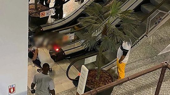 De acordo com clientes, homens armados entraram no local para perseguir um homem que estava na escada rolante. Ele tentou correr, mas foi atingido ali mesmo.