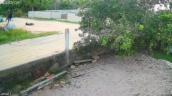 O pescador percebeu a investida, desceu da moto e tentou correr, mas foi alcançado pelo boi. O animal arremessou Erenildo para cima, fazendo seu capacete voar para longe. Em seguida, o boi sai do campo de visão da câmera e não reaparece.