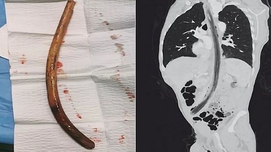 Os médicos tentaram, primeiro, puxar a vara pela garganta do paciente, mas essa estratégia falhou. Eles só conseguiram retirar o pedaço de madeira por meio de cirurgia, quando removeram o objeto através de um orifício feito no estômago do homem.