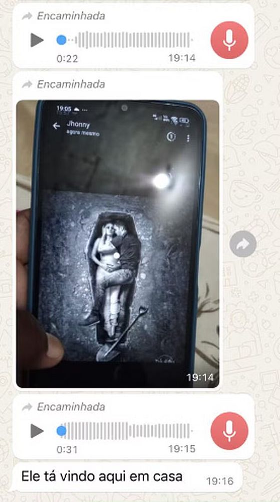 Segundo as investigações, o suspeito enviou as ameaças para a amiga da mulher porque estava bloqueado nas redes sociais dela. Além da foto, o homem escreveu uma legenda, onde dizia: "Não aguento mais. Se não ficar comigo, não vai ficar com mais ninguém".