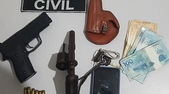 A polícia destacou que o homem foi encontrado com um revólver, de calibre 38, seis munições intactas, e um coldre, um estojo de couro que serve de suporte para carregar armas de fogo curtas. A quantia de R$ 1 mil também foi recolhida durante o cumprimento do mandado de busca e apreensão expedido pela Justiça do Estado.