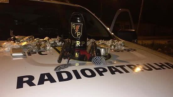Com ele, foram localizados dois revólveres calibre 38, munições, um rádio digital, cerca de 1,7 kg de maconha e uma quantia em dinheiro.