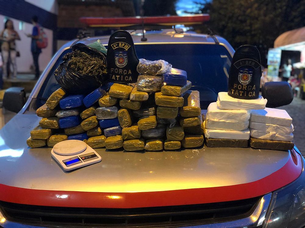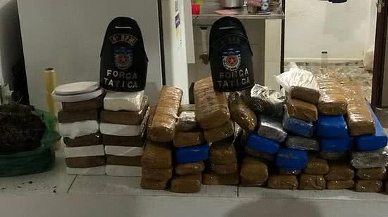Ao chegar à residência e fazer as buscas, os policiais encontraram 36,7 quilos de maconha prensada, 950 gramas de maconha in natura, uma balança de precisão, além de 13,8 quilos de pasta base de cocaína.