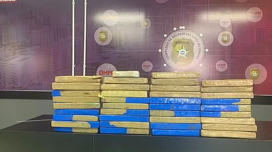 Foram apreendidos 33Kg de maconha, prensada em 38 tabletes.