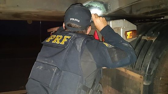 Para fins de fiscalização, os policiais verificaram os sinais identificadores. Ao pesquisarem a numeração do semirreboque branco nos sistemas da PRF, constatou-se ser o mesmo, mas chamou atenção dos agentes que o para-barros era de outra marca.