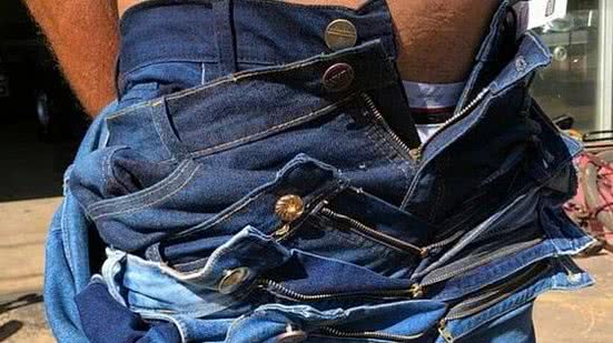 O homem vestia duas calças jeans, duas bermudas e uma terceira calça por cima. Além disso, foram encontrados dois pares novos de chinelos com ele. O caso aconteceu ontem em Monte Carmelo (MG), no Alto Paranaíba.