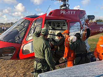 Após retirar o homem da água, os militares iniciaram os procedimentos de salvamento, como massagem cardiorrespiratória e acionamos a aeronave do Grupamento Aéreo para pouso no campo ao lado da praça multi eventos.