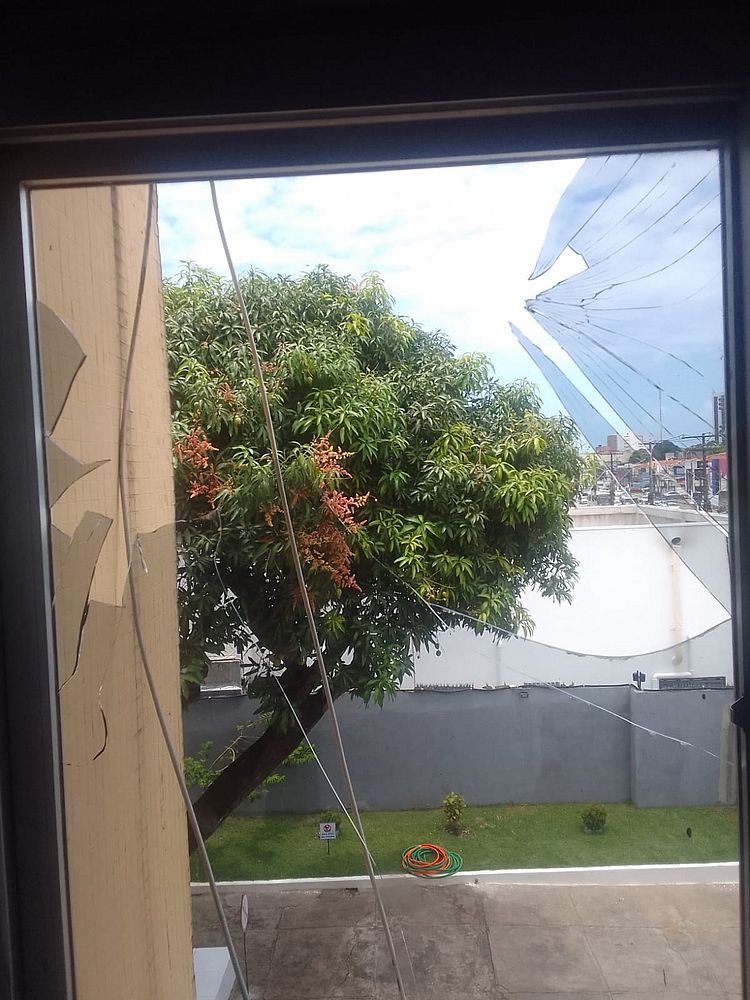 Um mês antes, ele já havia assustado pessoas em um ponto de ônibus na Avenida Tomás Espíndola. O homem foi visto andando de um lado para o outro, e arremessando pedras contra o condomínio, situado por trás do ponto da parada dos coletivos. Inclusive, uma das pedras quebrou o vidro de um apartamento, como mostra a imagem abaixo.