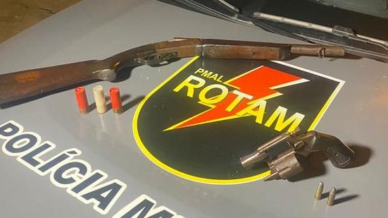 Após autorização para buscas no imóvel, a polícia encontrou uma espingarda de calibre 12, um revólver de calibre 38, duas munições de calibre 38, sendo uma intacta, e três munições de calibre 12, todas intactas. Segundo os militares, as duas armas foram ostentadas na transmissão. O material foi recolhido e encaminhado à unidade policial.