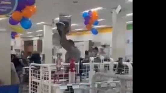 A gerente da loja chegou a ser empurrada e caiu. Nas imagens, é possível vê-la se debatendo e gritando, enquanto funcionários tentam acalmá-la. "Não faz isso não, meu Deus do céu", grita uma colaboradora, na tentativa de fazer o cliente parar.