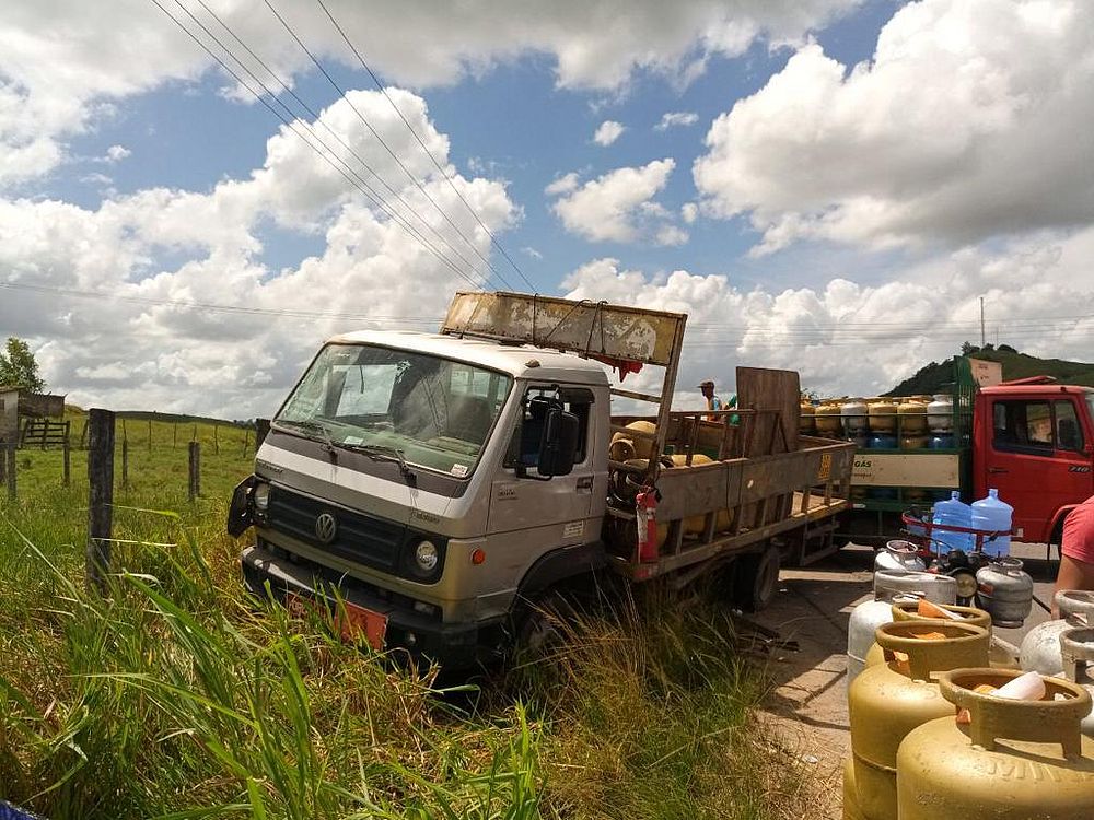 Segundo informações de testemunhas, o veículo Saveiro, de cor preta, teria sobrado na curva e atingiu a parte do meio do caminhão. Os botijões de gás se espalharam pelo acostamento da via depois da colisão.