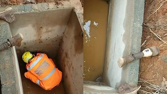 Ao chegarem no local, a corporação identificou que ele estava cerca de 3 metros de distância para dentro de uma manilha da galeria. Ele foi socorrido consciente e orientado. Os bombeiros informaram que ele apresentava um quadro de saúde estável e não tinha fraturas aparentes.