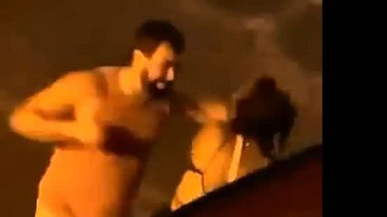 Mesmo ciente de que estava sendo filmado, o agressor não se intimidou e ainda desafiou a pessoa que filmava a mandar outro homem descer para confrontá-lo. "Ei, cadê ele aí, que você falou que ia mandar descer para mim? Manda ele descer, que eu quero ver", disse, com a voz embolada.
