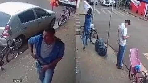 Nas imagens de outra câmera de segurança é possível ver que o suspeito tenta atirar contra Bianca, mas a arma falha e ela consegue correr. A mulher não ficou ferida. Em seguida, Santos entrou no carro e fugiu.