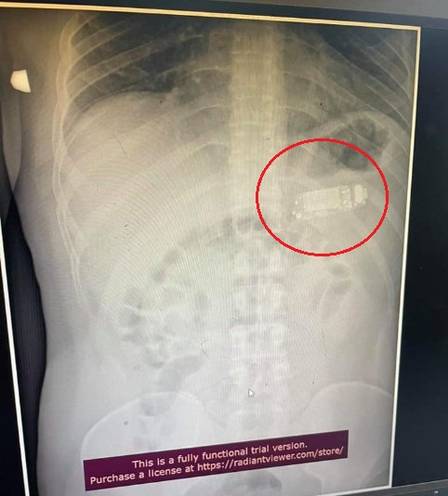 O aparelho era muito grande para "ser digerido" e colocava a vida do paciente em perigo, pois o ácido corrosivo da bateria poderia vazar. Skender Teljaku, que liderou a equipe de médicos, postou registros do caso no Facebook, incluindo imagens de raio-x e de endoscopia, quando o aparelho ainda estava no estômago do paciente. Os médicos conseguiram remover o corpo estranho sem cortar o estômago, retirando-o em três partes com ajuda da endoscopia.