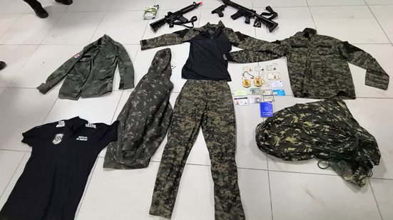 Simulacros de arma, camisas camufladas e documentos falsos
