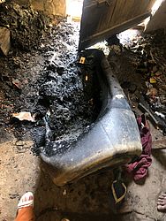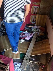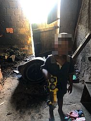 A menina, acompanhada por uma psicóloga, esclareceu que o pai não mora com ela e nem com a mãe e os irmãos, mas que as visitas dele se resumem a extorquir dinheiro da mãe. No dia do fato, ele ateou fogo na cozinha, colocando em risco a vida de todos os residentes.