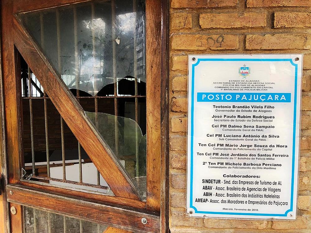 O posto policial que fica no bairro da Pajuçara, orla de Maceió, teve portas e janelas de vidro destruídas por um homem, na noite dessa quarta-feira (29).
