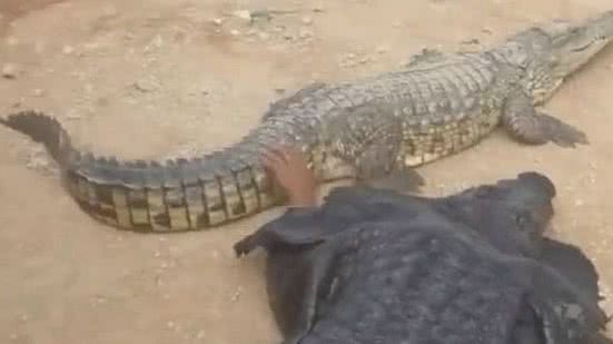Um homem vestiu uma fantasia de crocodilo e se aproximou de um réptil de verdade para provocá-lo, na Índia. Um fotógrafo registrou o encontro inusitado entre os "animais" e o vídeo viralizou nas redes sociais.
